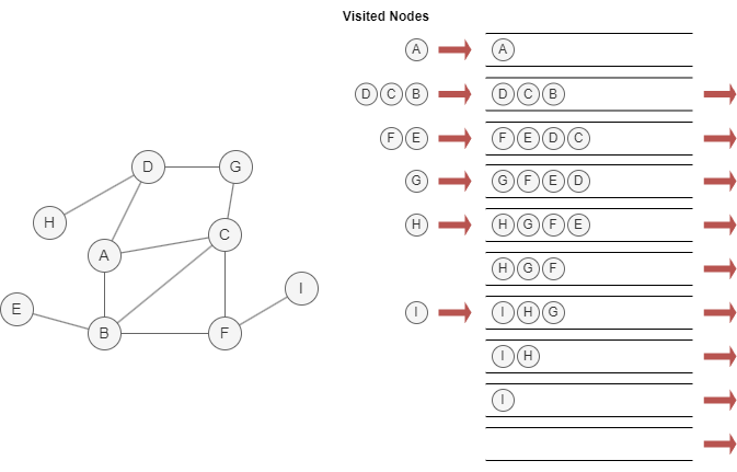 下面是以BFS方式遍历图的示例,以节点A作为起始节点,并假定按字母顺序(A~Z)访问邻居节点: