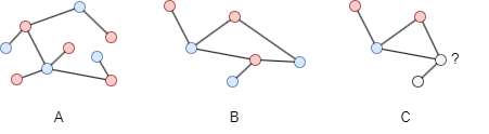 在这个例子中,图A和图B都是二分图。图C不是二分图,因为它包含一个奇数环。奇数环(Odd Cycle)是指节点数为奇数的环路。二分图不能包含奇数环,因为无法使用两种颜色对奇数环中的所有节点进行着色,同时满足二分图的要求。这种特性,即二分图不包含任何奇数环,是二分图的基本特征之一。