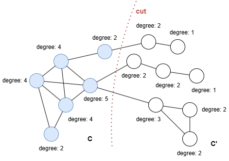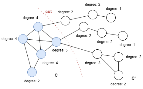 通过3条边与图中其他部分连接,即cut(C, C') = 3