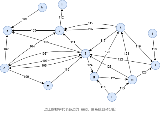 insert().into(@default).edges([{_from:"b", _to:"a"}, {_from:"d", _to:"a"}, {_from:"c", _to:"a"}, {_from:"d", _to:"c"}, {_from:"f", _to:"a"}, {_from:"f", _to:"d"}, {_from:"d", _to:"f"}, {_from:"f", _to:"d"}, {_from:"d", _to:"e"}, {_from:"e", _to:"f"}, {_from:"f", _to:"c"}, {_from:"c", _to:"h"}, {_from:"i", _to:"m"}, {_from:"i", _to:"g"}, {_from:"k", _to:"c"}, {_from:"k", _to:"c"}, {_from:"k", _to:"f"}, {_from:"j", _to:"l"}, {_from:"k", _to:"l"}, {_from:"g", _to:"k"}, {_from:"m", _to:"k"}, {_from:"l", _to:"f"}, {_from:"m", _to:"f"}, {_from:"f", _to:"g"}, {_from:"g", _to:"m"}, {_from:"m", _to:"l"}]);