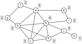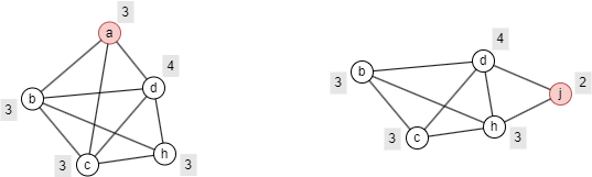 以下分别是包含节点a和节点j的最小(指节点数量)p-cohesion 子图。