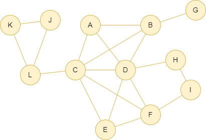 insert().into(@default).edges([{_from:"K", _to:"J"}, {_from:"K", _to:"L"}, {_from:"J", _to:"L"}, {_from:"L", _to:"C"}, {_from:"C", _to:"A"}, {_from:"A", _to:"B"}, {_from:"C", _to:"B"}, {_from:"A", _to:"D"}, {_from:"B", _to:"G"}, {_from:"B", _to:"D"}, {_from:"D", _to:"C"}, {_from:"C", _to:"E"}, {_from:"C", _to:"F"}, {_from:"D", _to:"E"}, {_from:"E", _to:"F"}, {_from:"D", _to:"F"}, {_from:"D", _to:"H"}, {_from:"I", _to:"H"}, {_from:"F", _to:"I"}]);