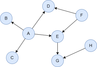 insert().into(@default).edges([{_from:"A", _to:"B"}, {_from:"A", _to:"C"}, {_from:"A", _to:"D"}, {_from:"A", _to:"E"}, {_from:"E", _to:"G"}, {_from:"F", _to:"D"}, {_from:"F", _to:"E"}, {_from:"H", _to:"G"}]);