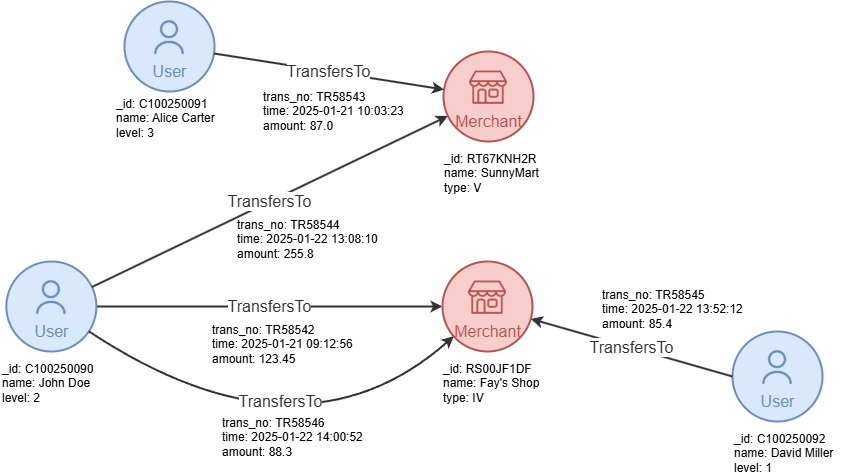 )。 - 各行数据转换成点和边:将表中的各行数据映射为图中的点或边。