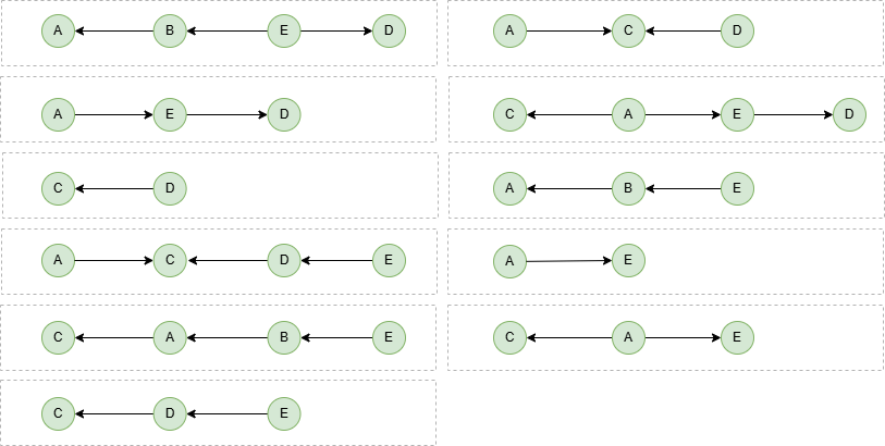 autonet().src({_id in ["A", "C"]}).dest({_id == "E"}).depth(:3).limit(1) as p