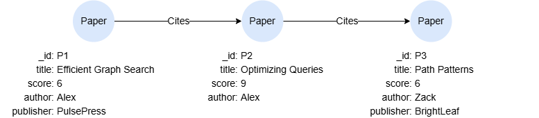 INSERT (p1:Paper {_id:'P1', title:'Efficient Graph Search', score:6, author:'Alex', publisher:'PulsePress'}),