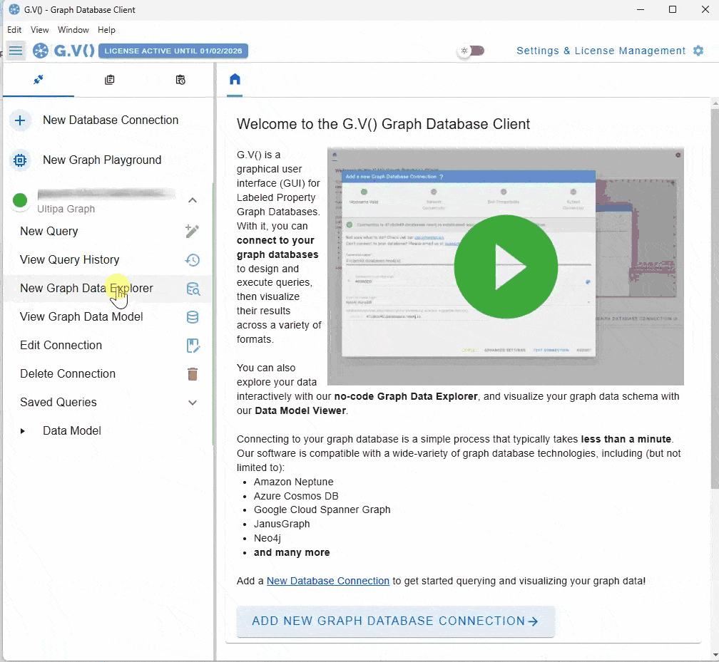 要连接到你的嬴图数据库,只需提供主机名、登录凭据,并选择要使用的图名称。连接过程十分快捷高效,如下所示: