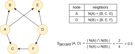 例如,杰卡德相似度算法通过对比两个节点邻居的交集和并集来计算两点间的相似度,即邻域越相似,两点也越相似。
