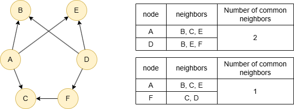 例如,共同邻居算法计算两个节点间的共同邻居数量,作为预测分数。其背后逻辑如下,拥有大量共同邻居的节点,未来更有可能建立连接。